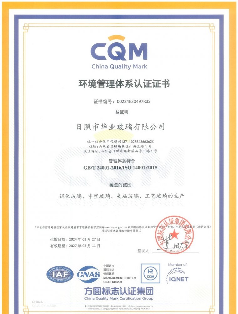 環(huán)境管理體系認(rèn)證證書