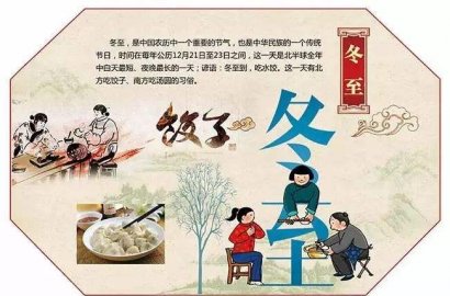 二十四節(jié)氣中的第二十二個節(jié)氣。進入冬至節(jié)氣這一天,太陽直射南回歸線,北半球白天最短,黑夜最長,數(shù)九寒天從此開始。