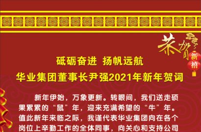 新年伊始,萬象更新。轉眼間,我們送走碩果累累的“鼠”年,迎來充滿希望的“?!蹦辍V荡诵履陙砼R之際,我謹代表華業(yè)集團向在各個崗位上辛勤工作的全體同事,向關心和支持公司發(fā)展的各級領導、廣大客戶、員工家屬及各界朋友,致以誠摯的問候和衷心的感謝!祝大家在新的一年里,工作順利、身體健康、闔家幸福、萬事如意!?