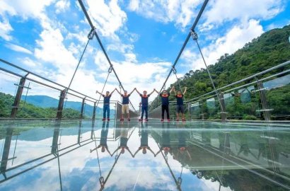 昨天上午, 在懸空跨度72米、直徑16.8米的懸空玻璃平臺(tái)上,來(lái)自世界紀(jì)錄協(xié)會(huì)(World Record Association)的美國(guó)認(rèn)證官邁克·溫特森和中方認(rèn)證官?gòu)埥⌒迹暹h(yuǎn)古龍峽景區(qū)的懸空玻璃平臺(tái)、玻璃吊橋、玻璃觀光組合、叢林飛躍四個(gè)項(xiàng)目,挑戰(zhàn)世界紀(jì)錄成功。